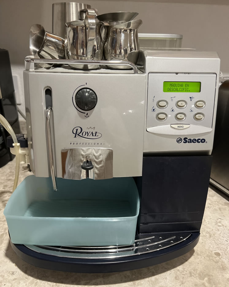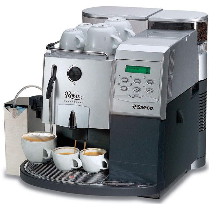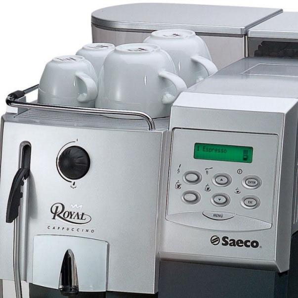Da linha Royal a “Royal Cappuccino” oferece maior número de benefícios: Utiliza café moído na hora. Grupo de Café exclusivo Saeco, para a máxima qualidade do café expresso, de simples manutenção e limpeza, mais resistente e mais confiável. Possui duas caldeiras independentes permitindo o preparo de leite e café simultaneamente, possui um cappuccinador para preparo de cappuccinos, além do aquecedor de xícaras, vapor para aquecer e aeração do leite e água quente para o preparo de chá.